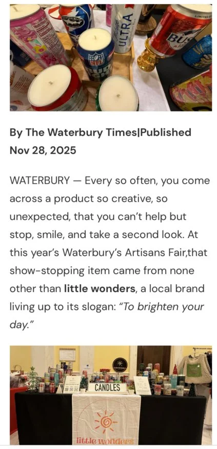 Little Wonders was born from my own healing journey after losing my sister to cancer. Creating these candles helped me find light again, and my hope is to share that light with others — spreading joy, hope, and a little wonder with every burn.